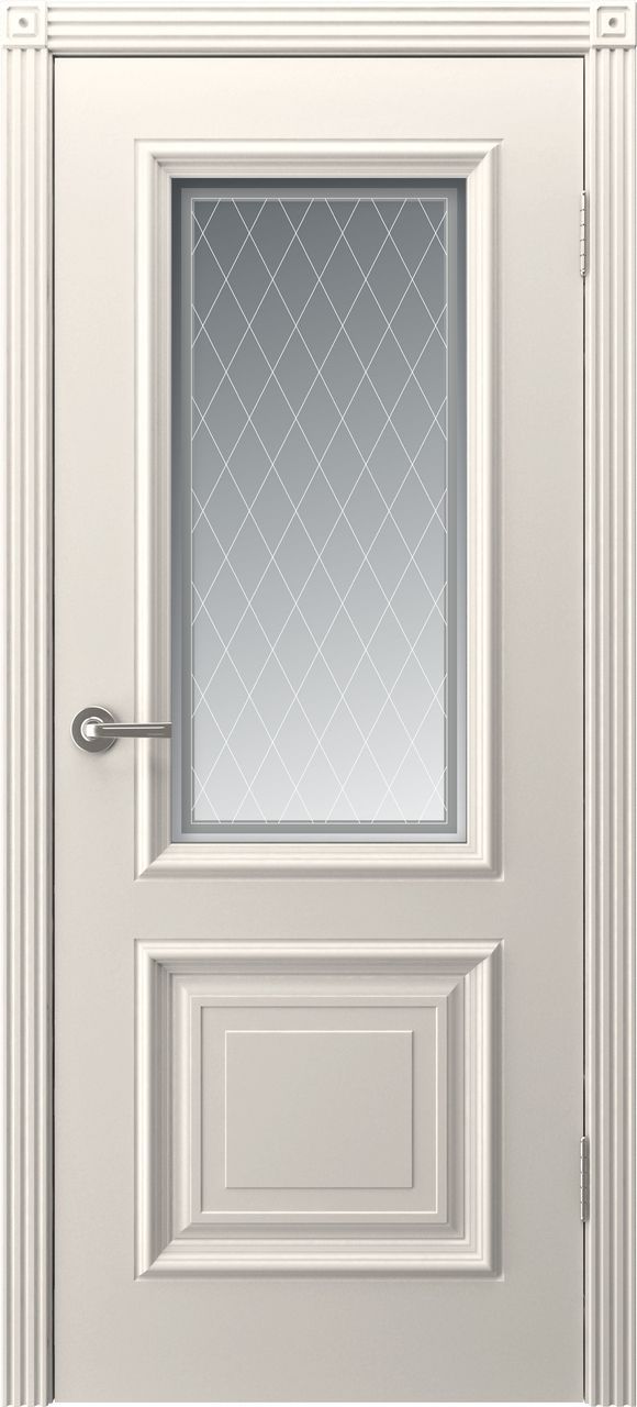 Дверь Акцент имеет каркасно-щитовую конструкцию с фрезерованной поверхностью полотна, имитирующей филенки, и цельным багетом без узора. Модель может быть глухой или остеклена сатинатом, стеклом с фотопечатью или рефлективным стеклом с фотопечатью на выбор и покрыта эмалью.
