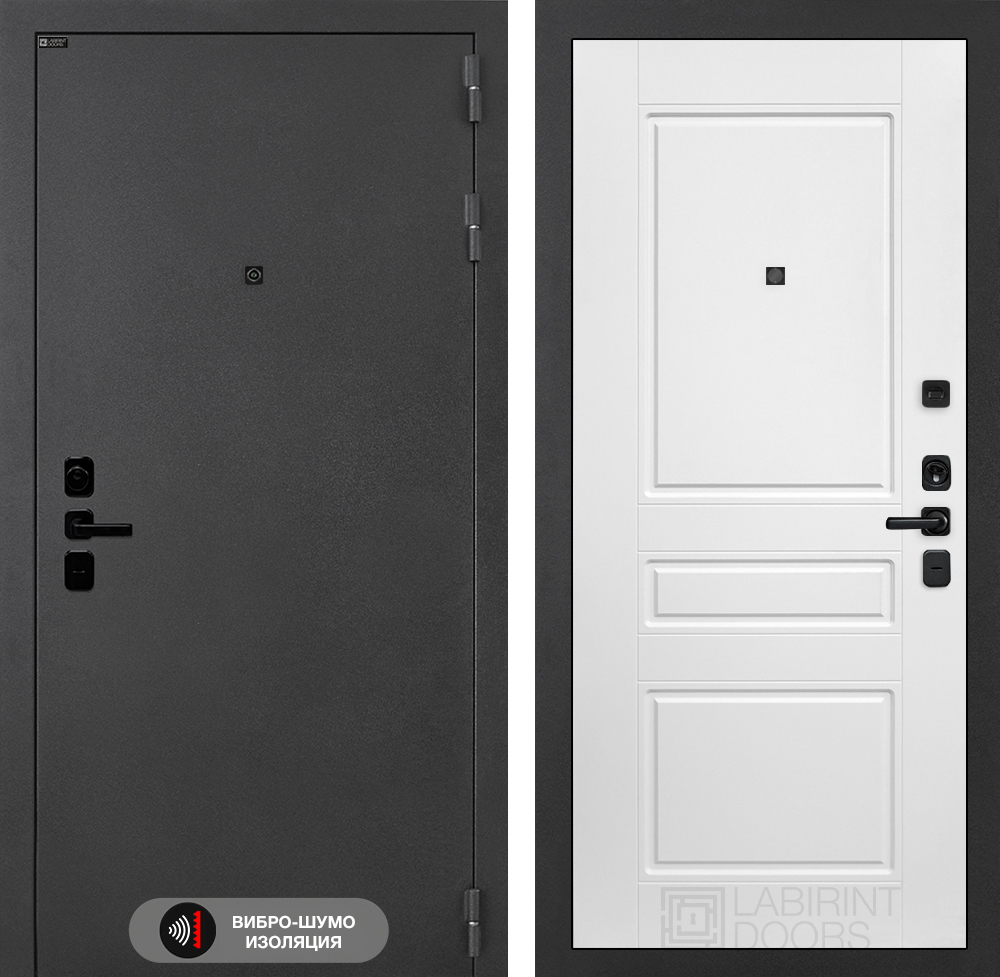 Фурнитура в черном цвете: Броненакладка врезная, накладка со шторкой, глазок , дверная ручка, ночная задвижка. Цилиндр ключ-вертушка (производитель не регламентируется), регулируемый эксцентрик.