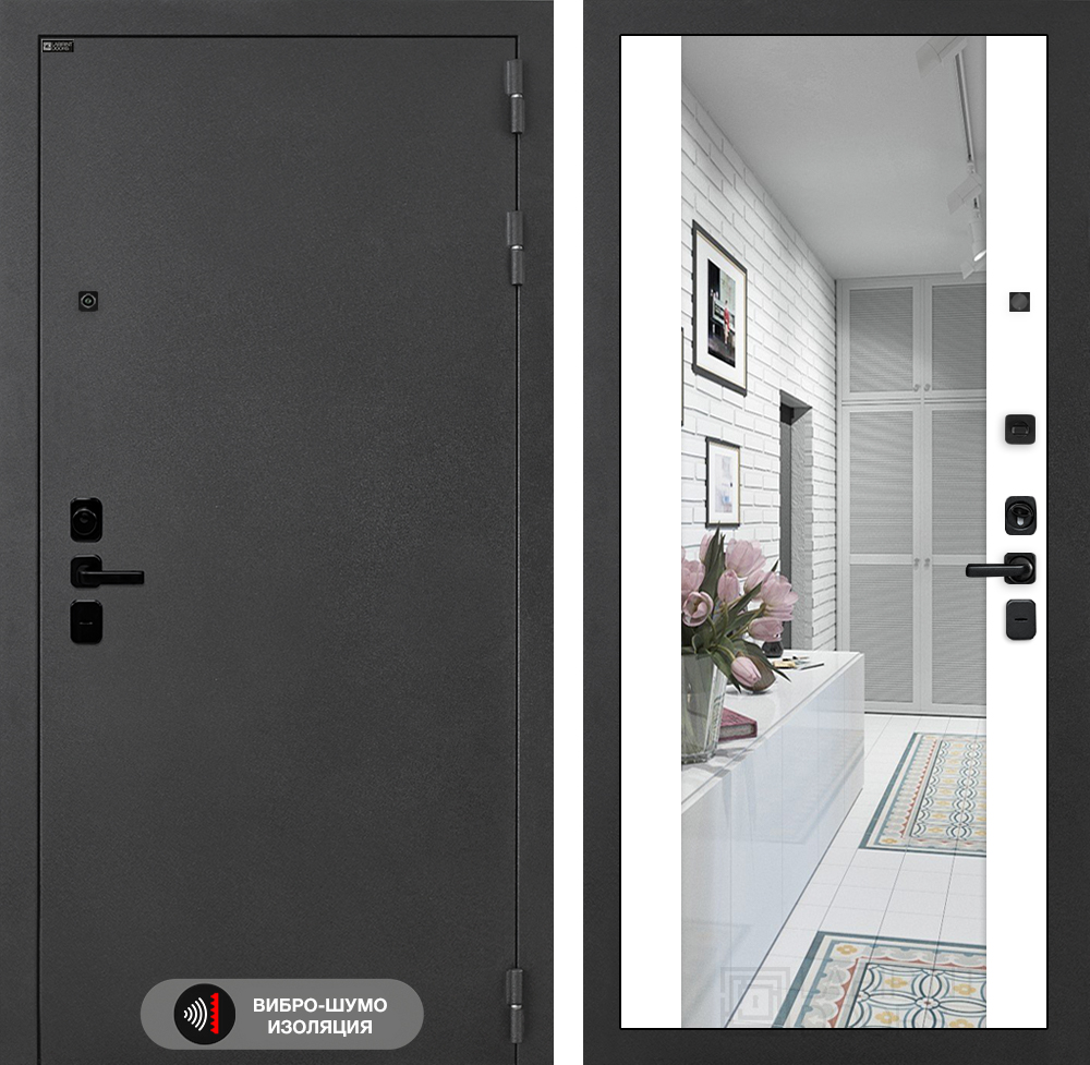 Фурнитура в черном цвете: Броненакладка врезная, накладка со шторкой, глазок , дверная ручка, ночная задвижка. Цилиндр ключ-вертушка (производитель не регламентируется), регулируемый эксцентрик.