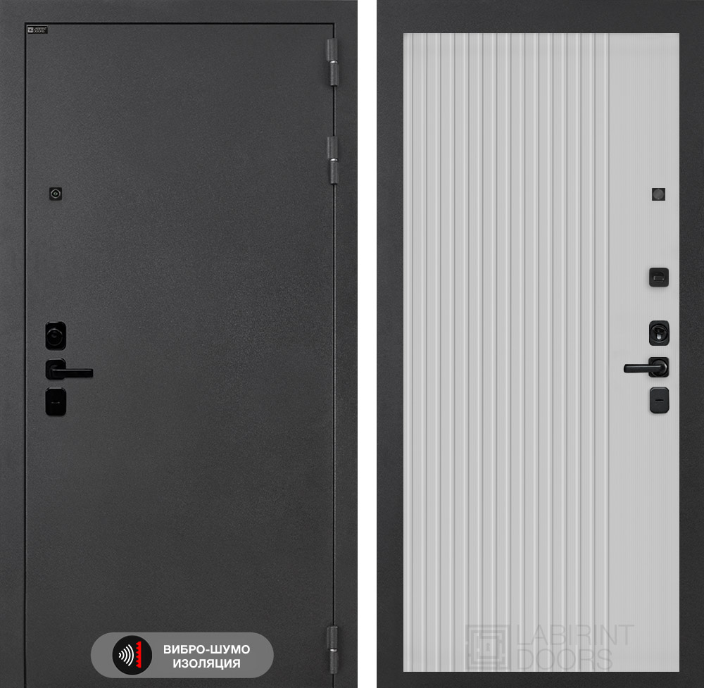 Фурнитура в черном цвете: Броненакладка врезная, накладка со шторкой, глазок , дверная ручка, ночная задвижка. Цилиндр ключ-вертушка (производитель не регламентируется), регулируемый эксцентрик.