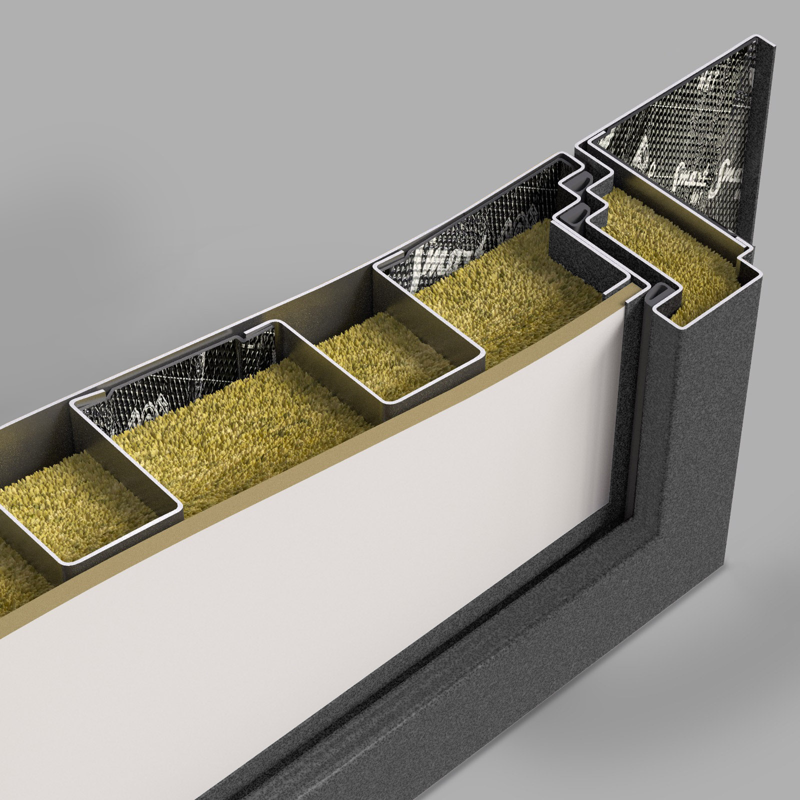 Сталь 1,8 мм, замковый карман, закрытый утепленный короб, усиливающие 2 ребра жесткости (вертикальные П-образные, утепленные)