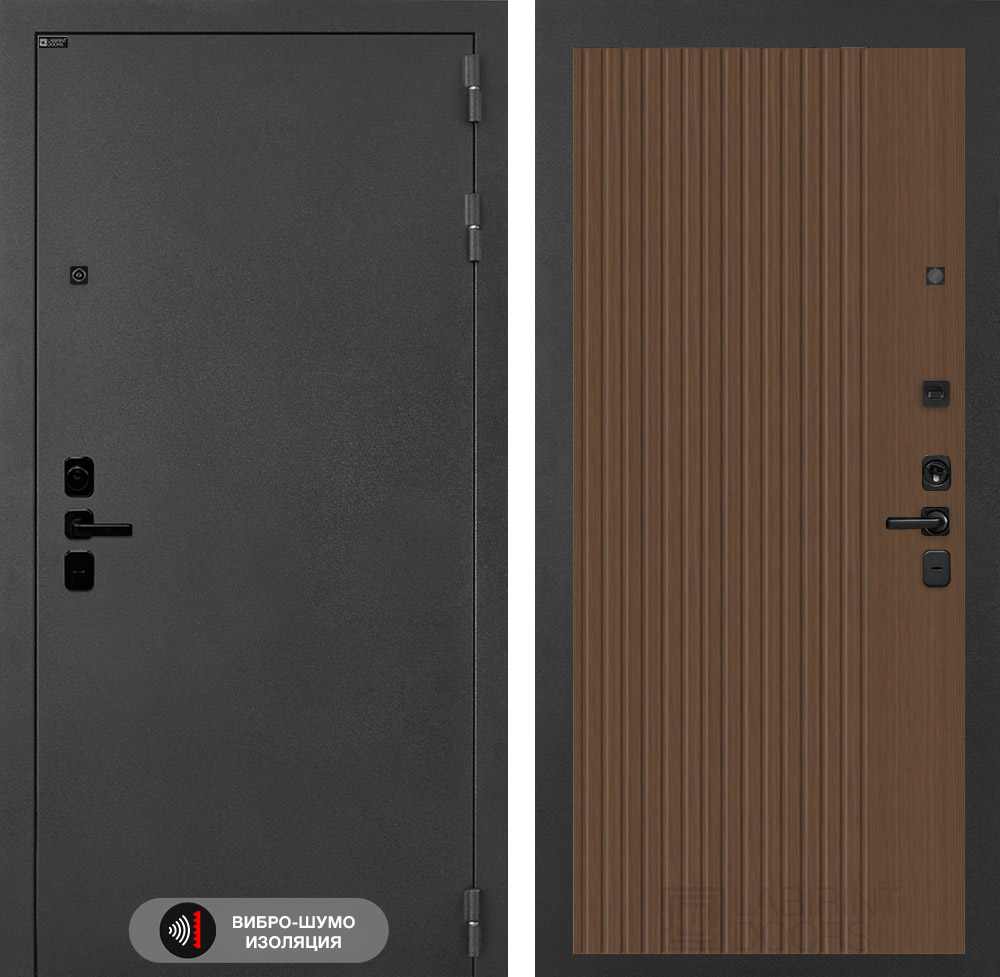 Фурнитура в черном цвете: Броненакладка врезная, накладка со шторкой, глазок , дверная ручка, ночная задвижка. Цилиндр ключ-вертушка (производитель не регламентируется), регулируемый эксцентрик.