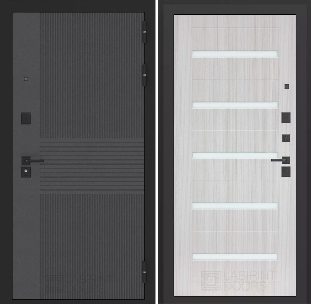 Черная фурнитура (полимерная): накладки сувальдные со шторкой, накладка под цилиндр, дверная ручка, ночная задвижка, металлический эксцентрик с защитной вставкой.