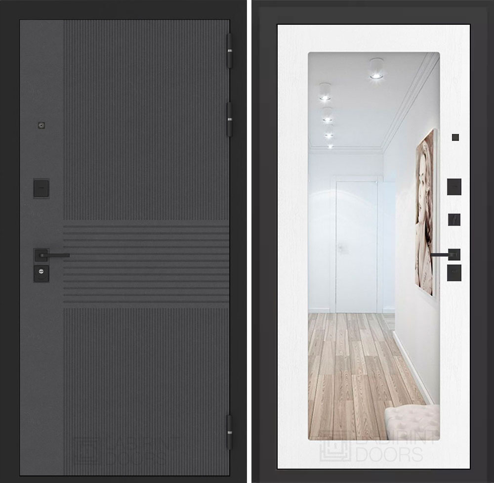 Черная фурнитура (полимерная): накладки сувальдные со шторкой, накладка под цилиндр, дверная ручка, ночная задвижка, металлический эксцентрик с защитной вставкой.
