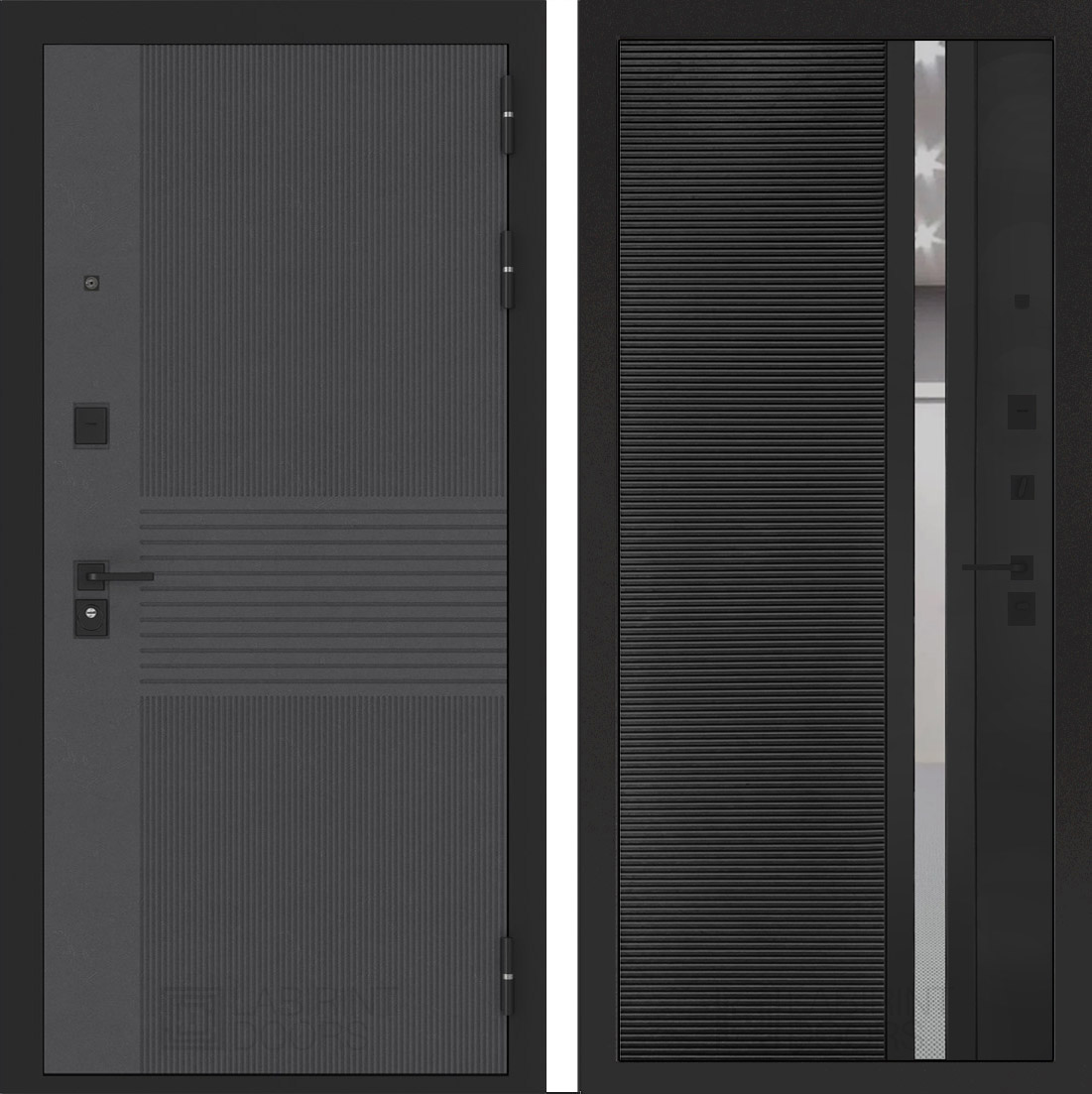 Сталь 1,5 мм, закрытый утепленный короб, усиливающие 2 ребра жесткости (вертикальные П-образные, утепленные)