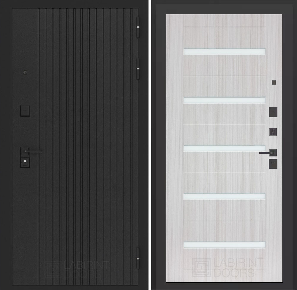 Черная фурнитура (полимерная): накладки сувальдные со шторкой, накладка под цилиндр, дверная ручка, ночная задвижка, металлический эксцентрик с защитной вставкой.