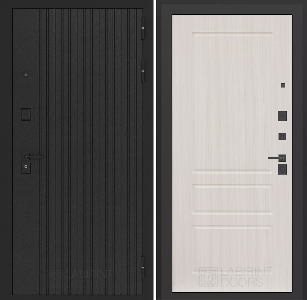 Черная фурнитура (полимерная): накладки сувальдные со шторкой, накладка под цилиндр, дверная ручка, ночная задвижка, металлический эксцентрик с защитной вставкой.