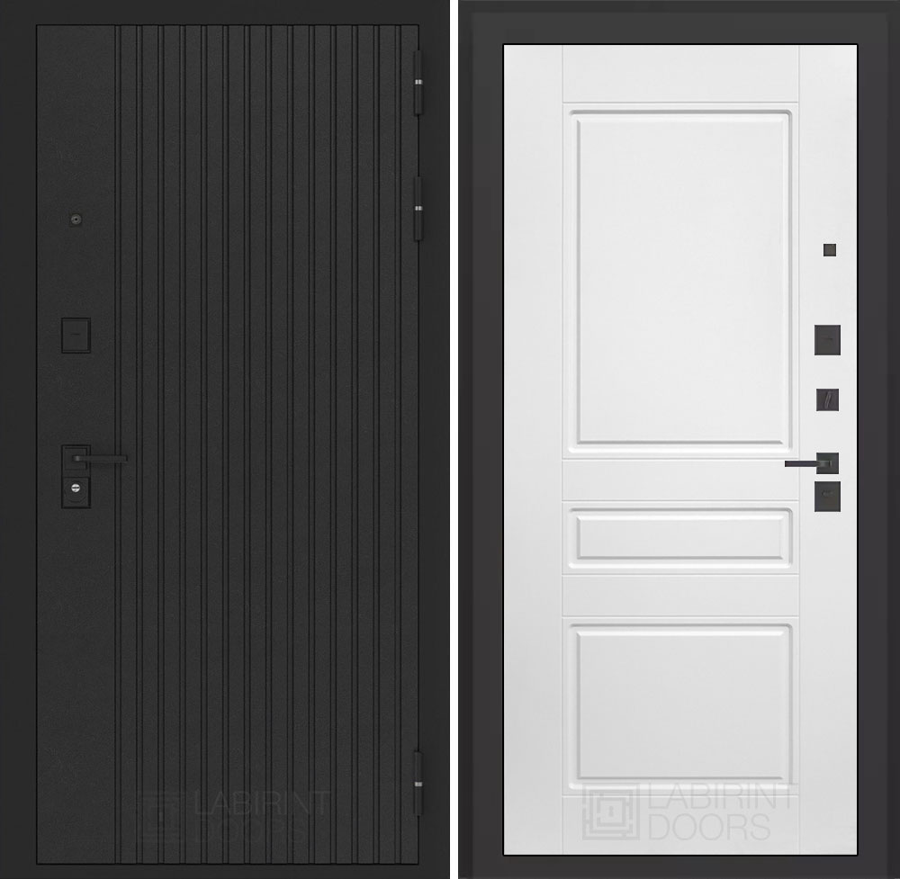 Черная фурнитура (полимерная): накладки сувальдные со шторкой, накладка под цилиндр, дверная ручка, ночная задвижка, металлический эксцентрик с защитной вставкой.
