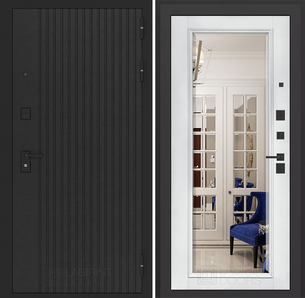 Черная фурнитура (полимерная): накладки сувальдные со шторкой, накладка под цилиндр, дверная ручка, ночная задвижка, металлический эксцентрик с защитной вставкой.
