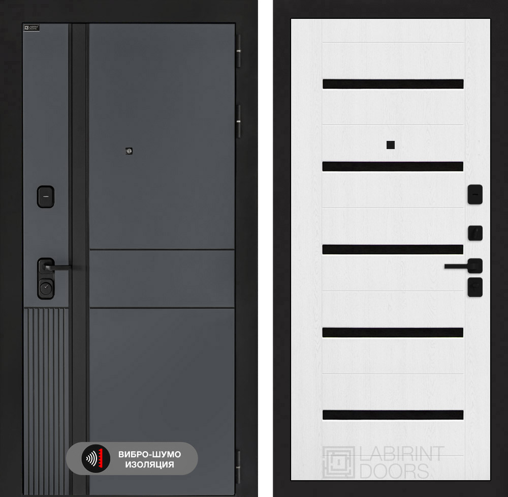 Фурнитура в черном цвете: Броненакладка врезная, накладка со шторкой, глазок , дверная ручка, ночная задвижка. Цилиндр ключ-вертушка (производитель не регламентируется), регулируемый эксцентрик.