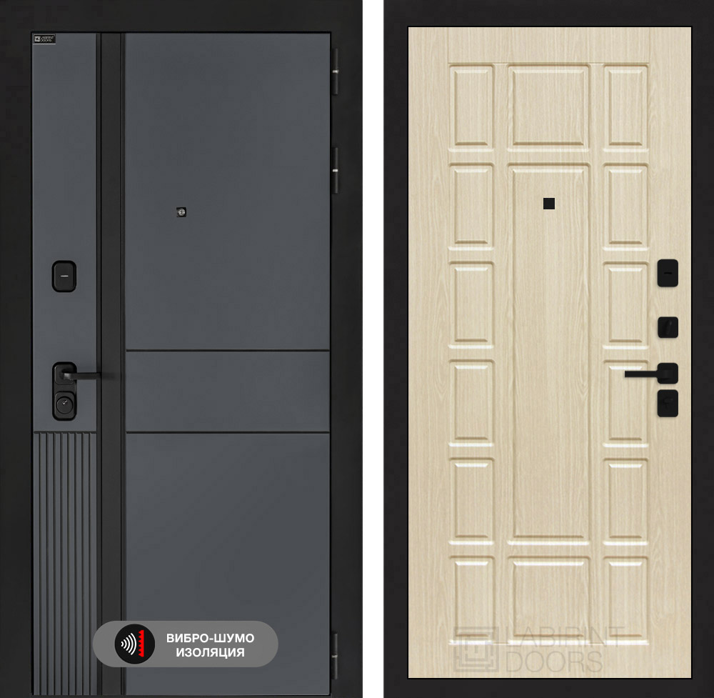 - Фурнитура в черном цвете: Броненакладка врезная, накладка со шторкой, глазок , дверная ручка, ночная задвижка. Цилиндр ключ-вертушка (производитель не регламентируется), регулируемый эксцентрик.