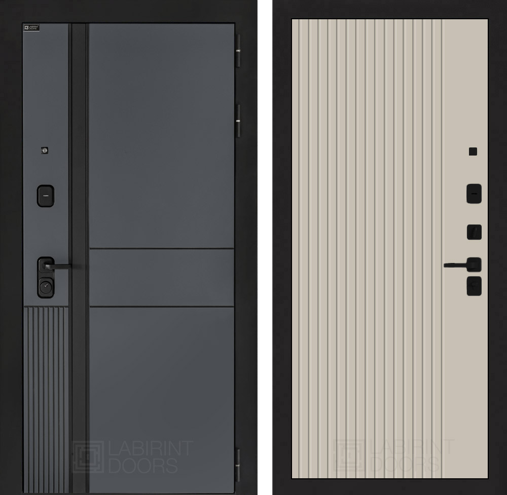 Фурнитура в черном цвете: Броненакладка врезная, накладка со шторкой, глазок , дверная ручка, ночная задвижка. Цилиндр ключ-вертушка (производитель не регламентируется), регулируемый эксцентрик.