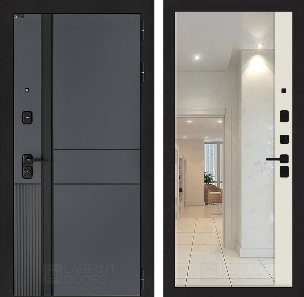 Фурнитура в черном цвете: Броненакладка врезная, накладка со шторкой, глазок , дверная ручка, ночная задвижка. Цилиндр ключ-вертушка (производитель не регламентируется), регулируемый эксцентрик.