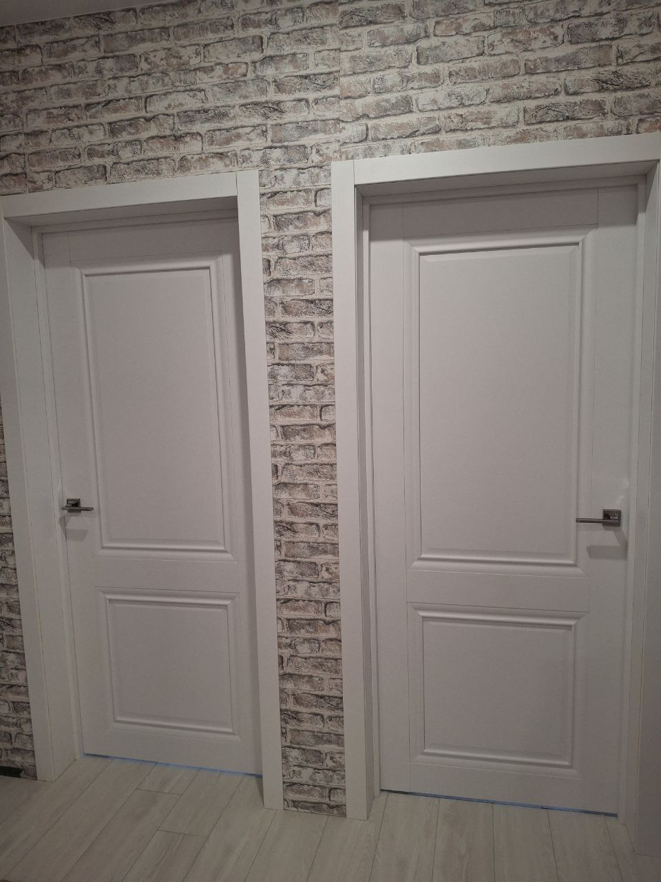 Межкомнатная дверь сборной конструкции с объемной филенкой. Отделка из экошпона с имитацией эмалированного покрытия.