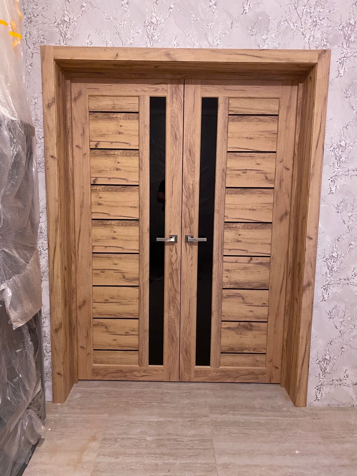 Модель Евро 45 — универсальный вариант для офиса и дома, выполненный в актуальных тенденциях интерьерной моды. Покрытие из фактурного экошпона не бликует, устойчиво к износу и повреждениям, приятно на ощупь. Каркас полотна сделан с использованием соснового бруса и дополнительным усилением в районе замковых и петельных зон. Каждый угол рамы имеет пару деревянных шкантов и стяжной винт (конфирмат), что значительно усиливает конструкцию в целом. Подобная конструкция надежна и эстетична. Вертикальная линия из черного стекла «Лакобель» устремленная вверх и горизонтальные черные вставки гармонично сочетаются, создавая ощущение легкости и комфорта. Все детали двери идеально уравновешивают друг друга, не перегружая, а наоборот, создавая цельную картину.