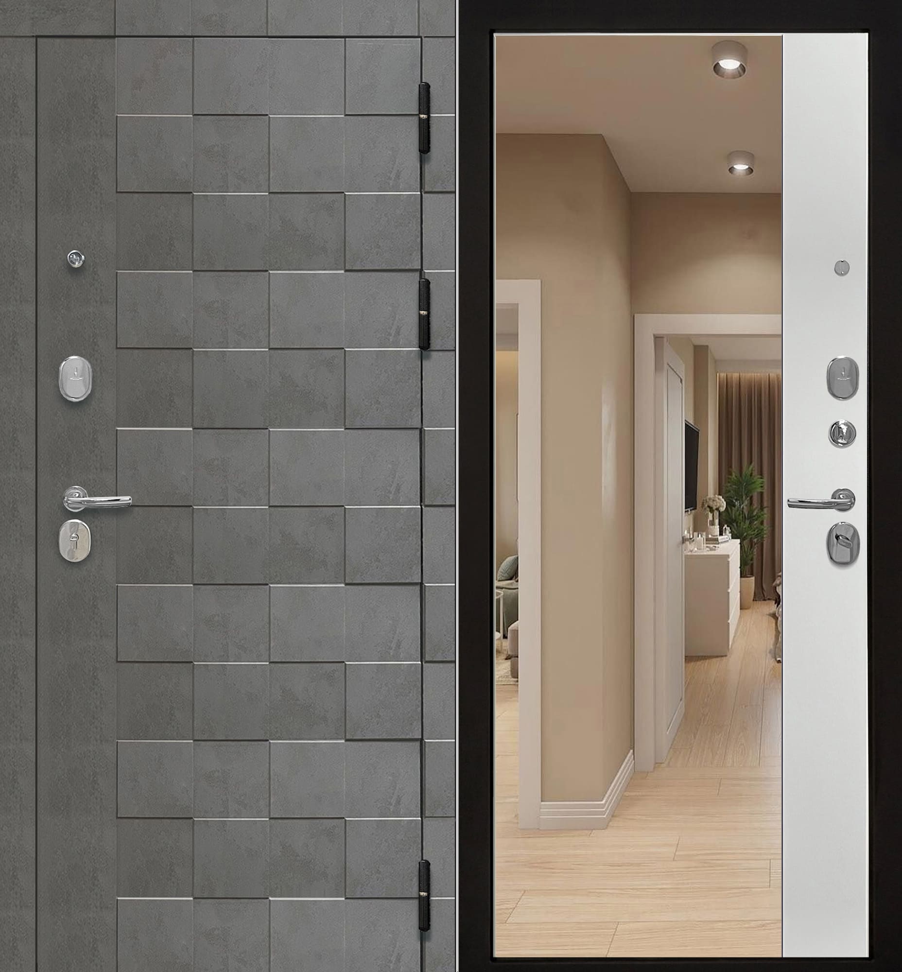 Фрезерованная МДФ панель 10мм "Бетон темный", комбинация объемного шахматного рисунка и гладкой поверхности.