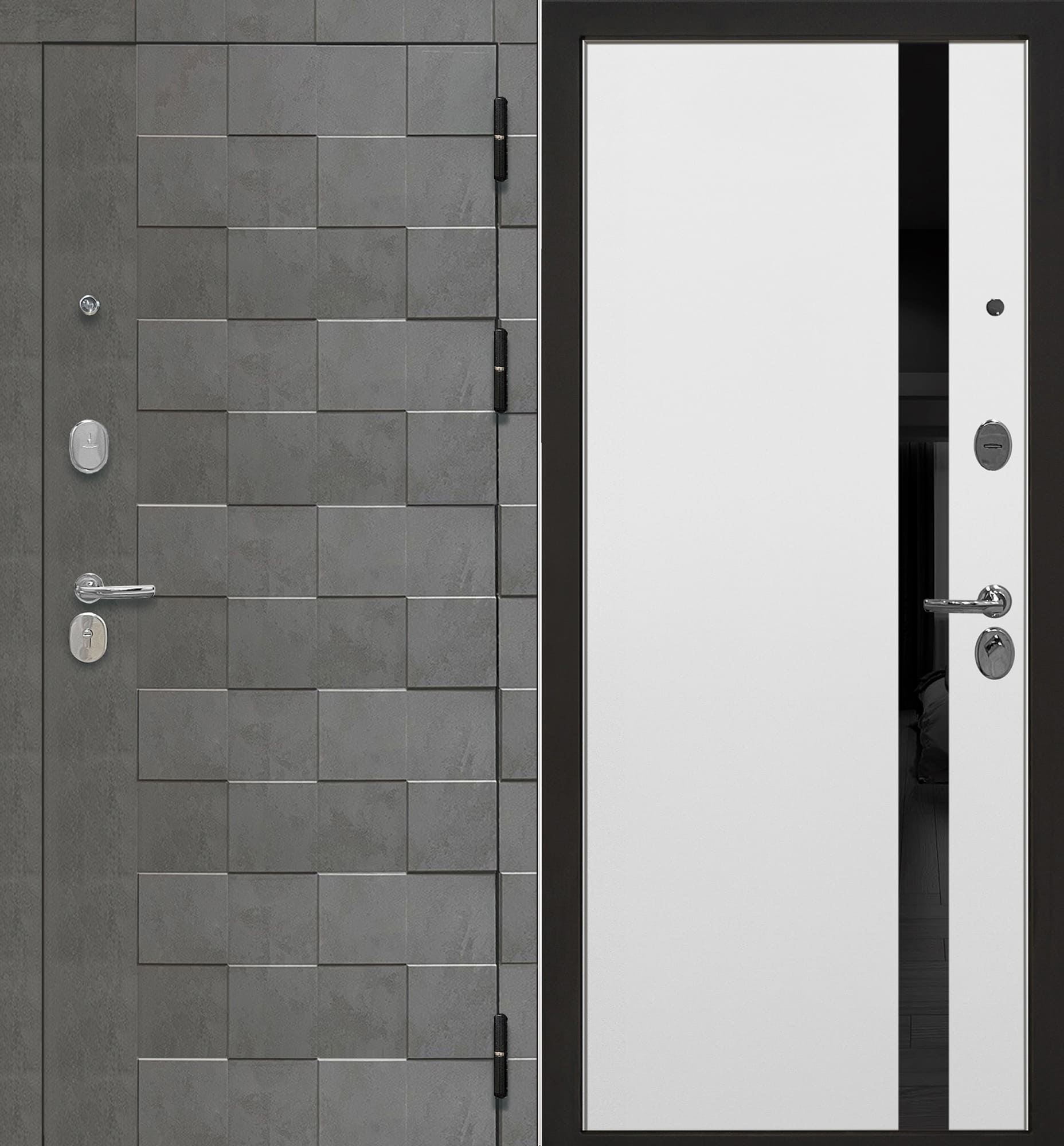 Фрезерованная МДФ панель 10мм "Бетон темный", комбинация объемного шахматного рисунка и гладкой поверхности.