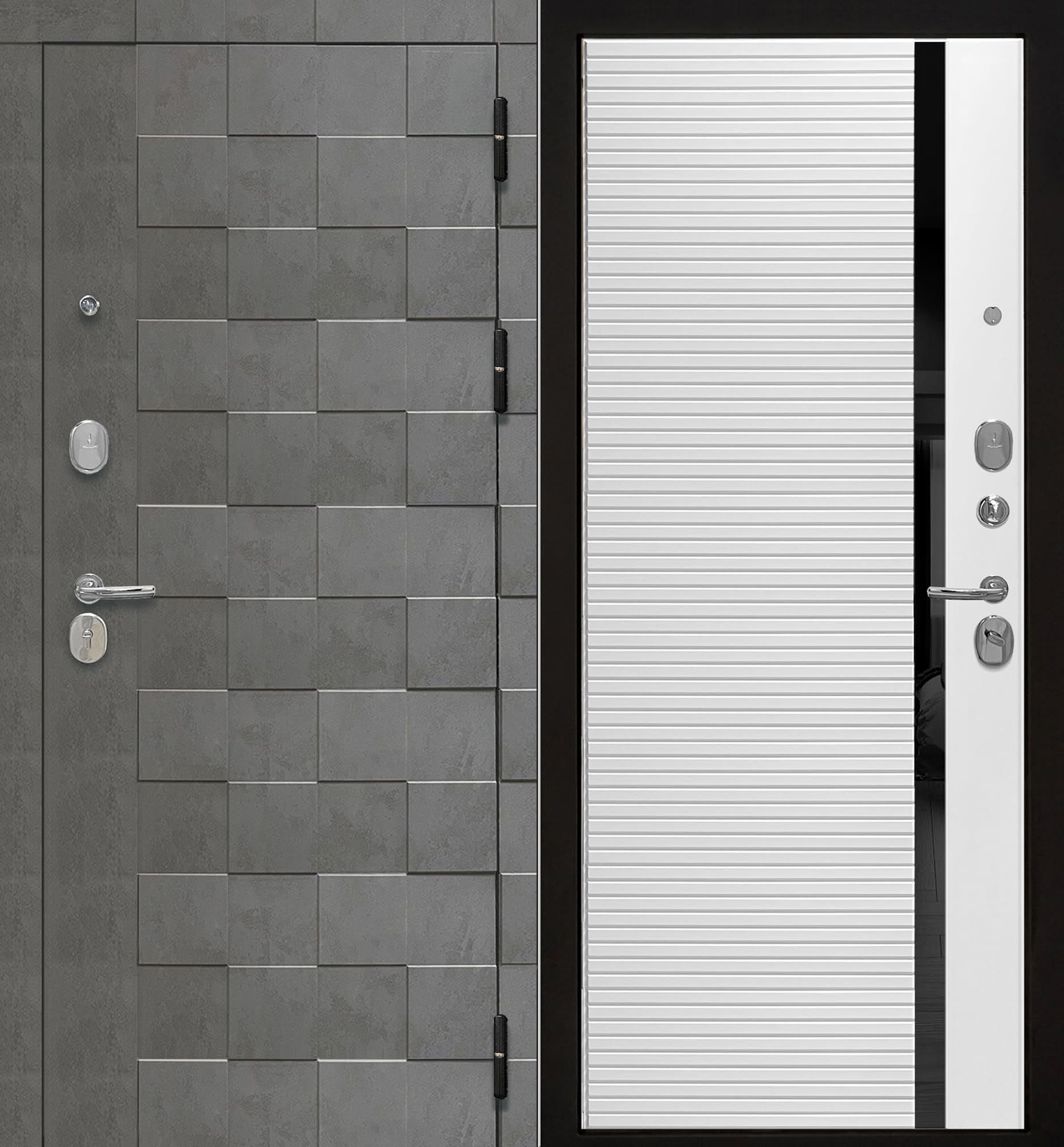 Фрезерованная МДФ панель 10мм "Бетон темный", комбинация объемного шахматного рисунка и гладкой поверхности.