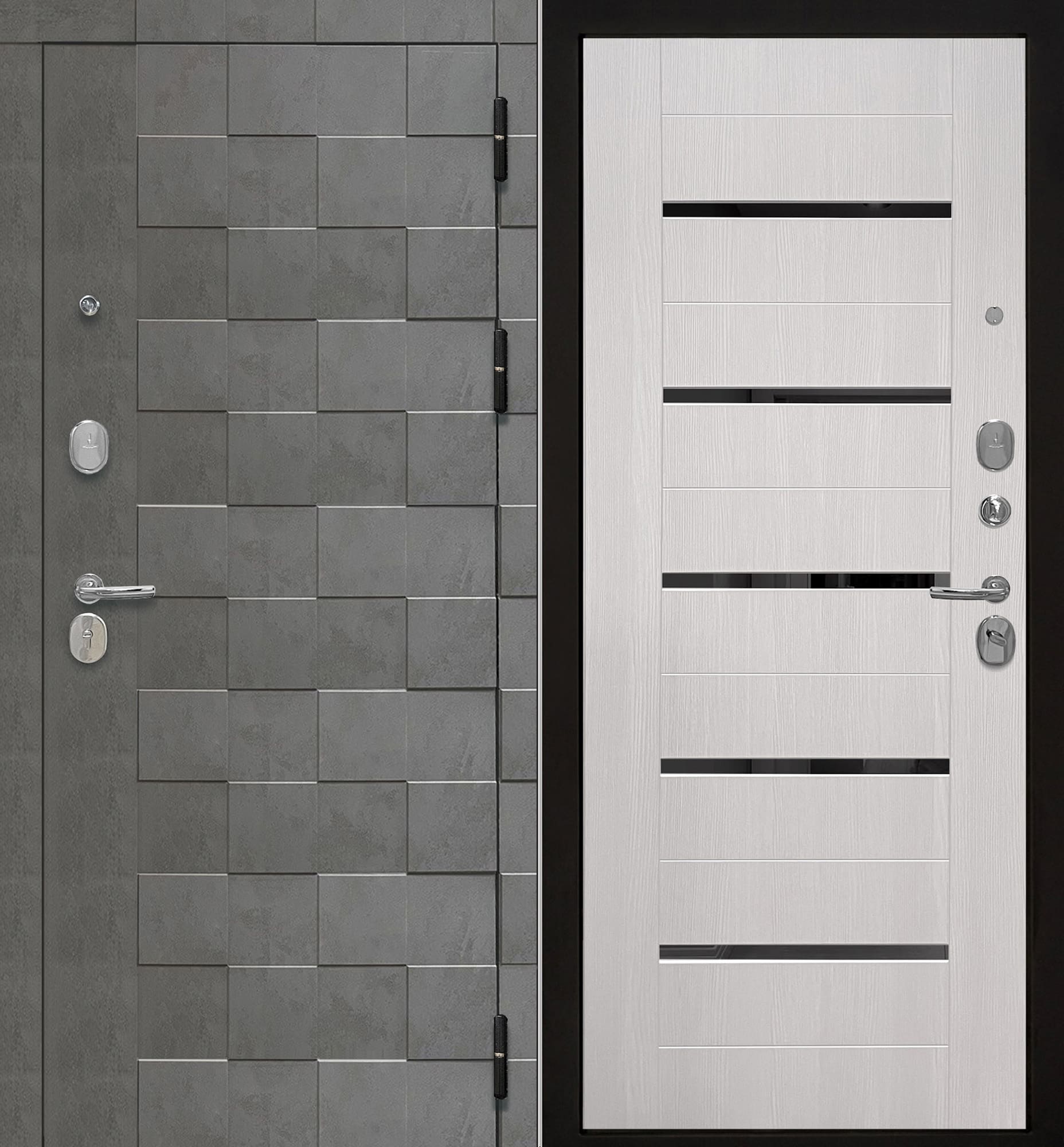 Фрезерованная МДФ панель 10мм "Бетон темный", комбинация объемного шахматного рисунка и гладкой поверхности.
