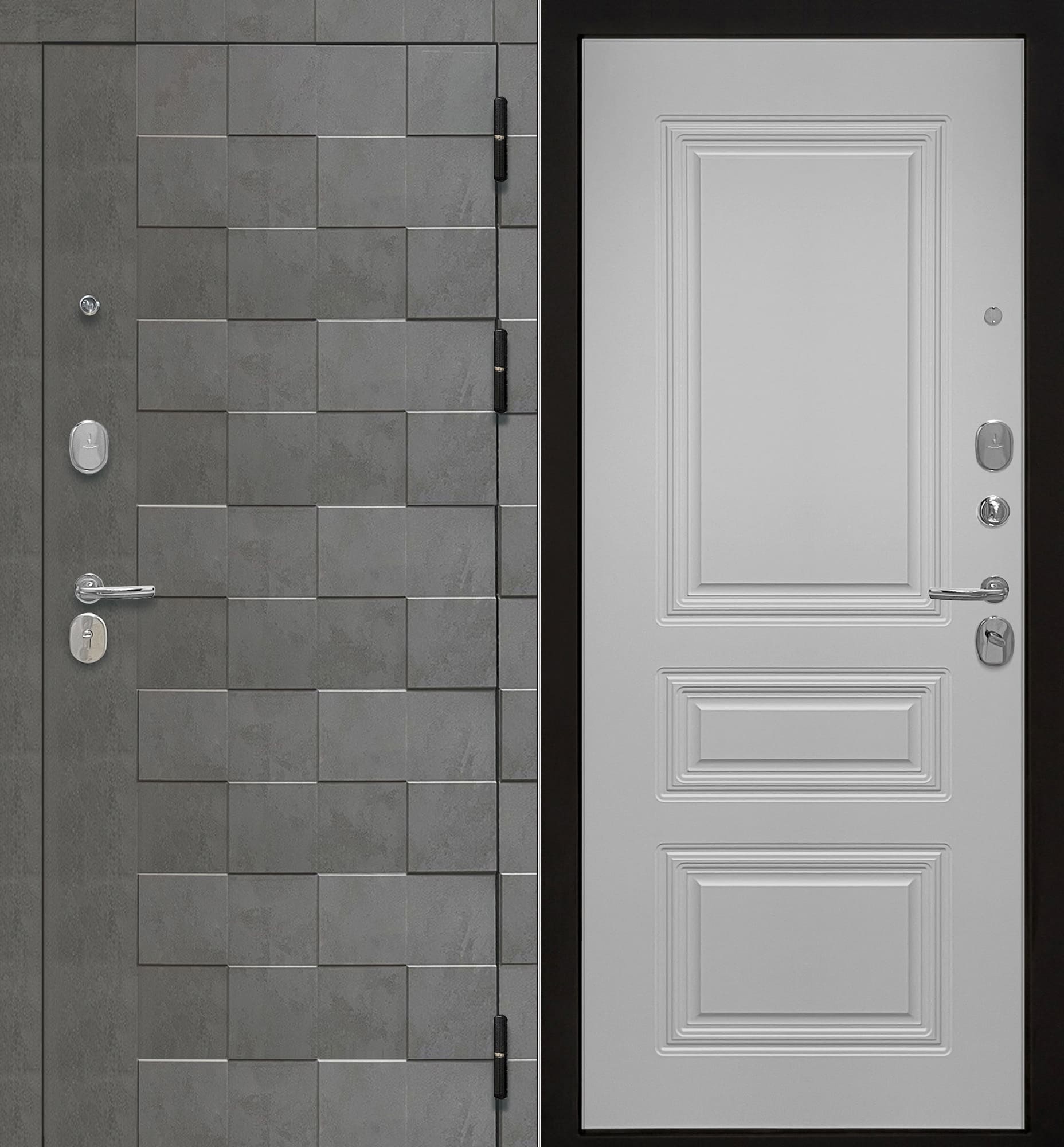 Фрезерованная МДФ панель 10мм "Бетон темный", комбинация объемного шахматного рисунка и гладкой поверхности.