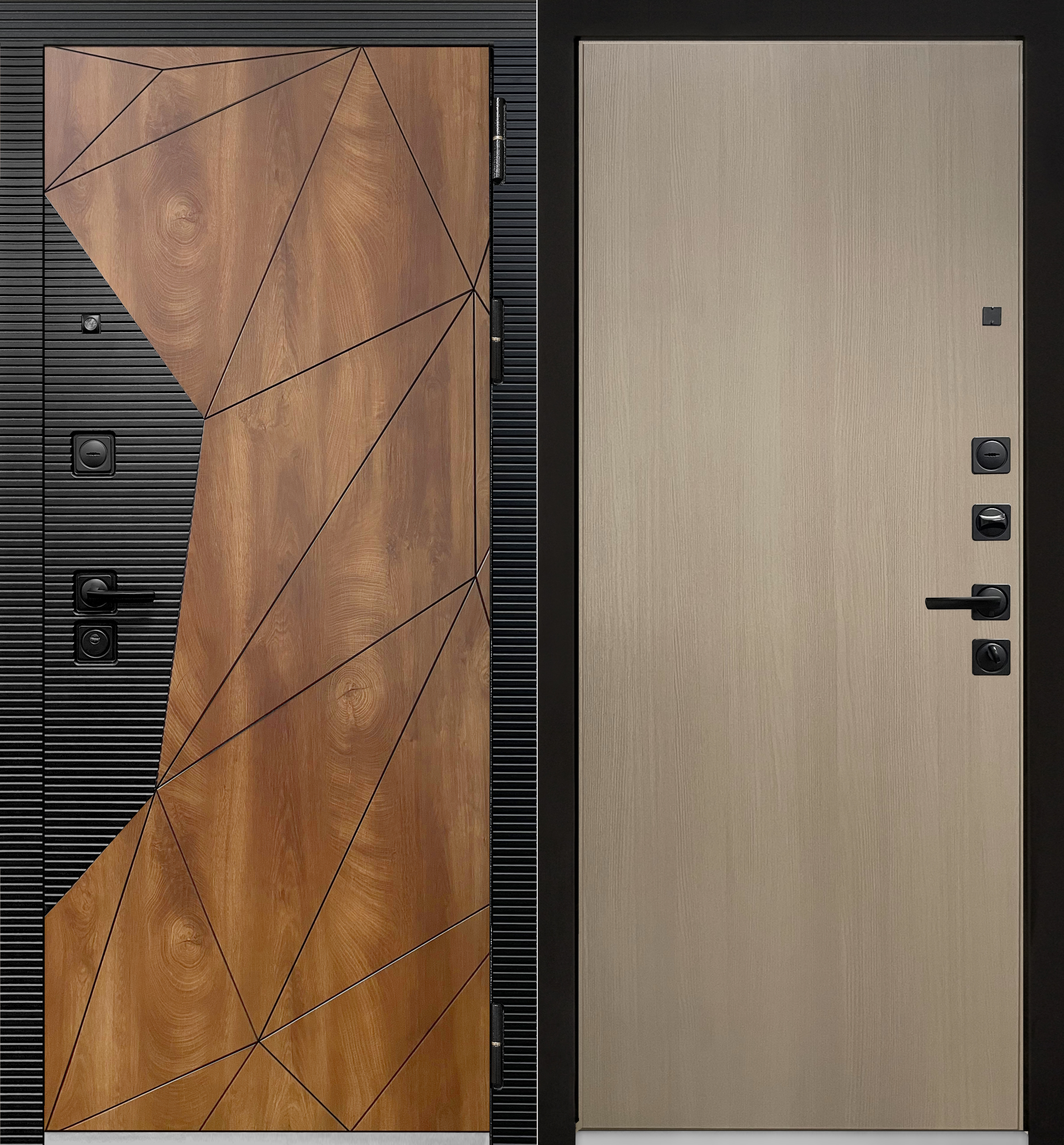 Объёмная комбинированная МДФ панель 10 мм, экошпон Дуб коньяк с вековыми кольцами и патиной, горизонт фреза  экошпон Кварц чёрный.