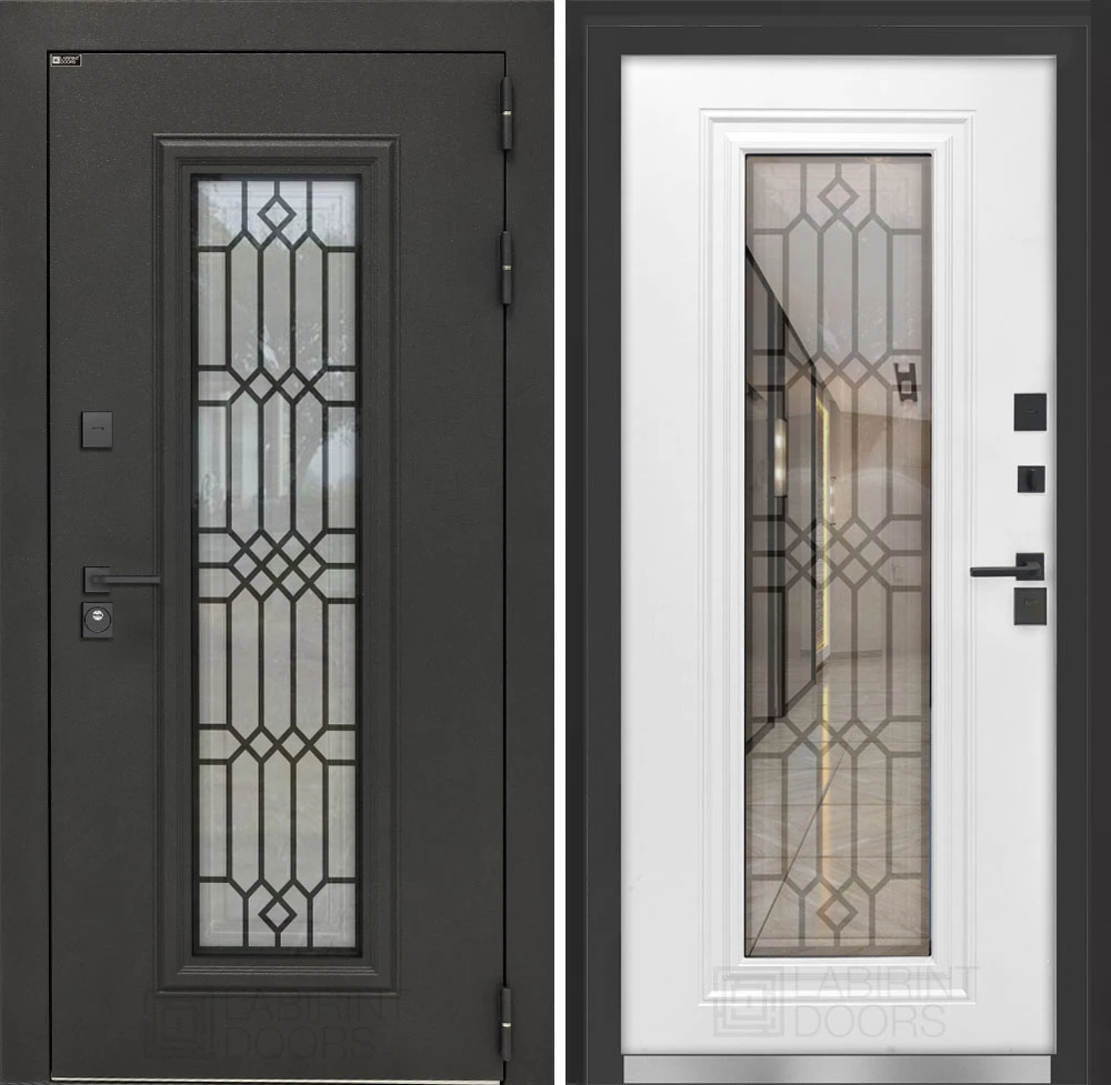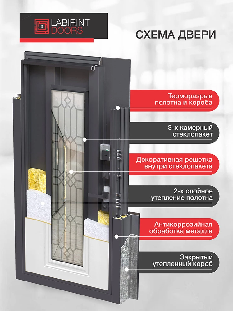 - 3-х камерный стеклопакет 81 мм, зеркальная тонировка стекла (рефлектив серебро). Лазерная решетка внутри стеклопакета (муар черный)