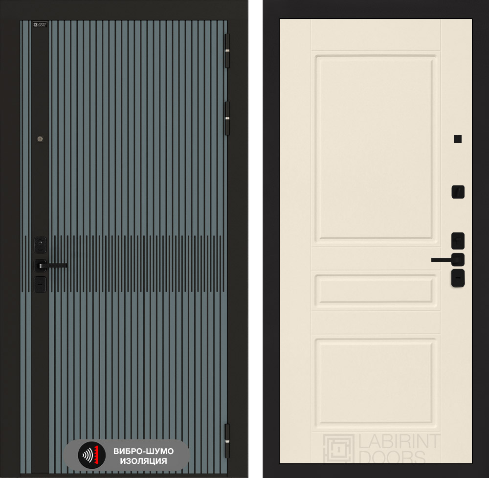 Фурнитура в черном цвете: Броненакладка врезная, накладка со шторкой, глазок , дверная ручка, ночная задвижка. Цилиндр ключ-вертушка (производитель не регламентируется), регулируемый эксцентрик.