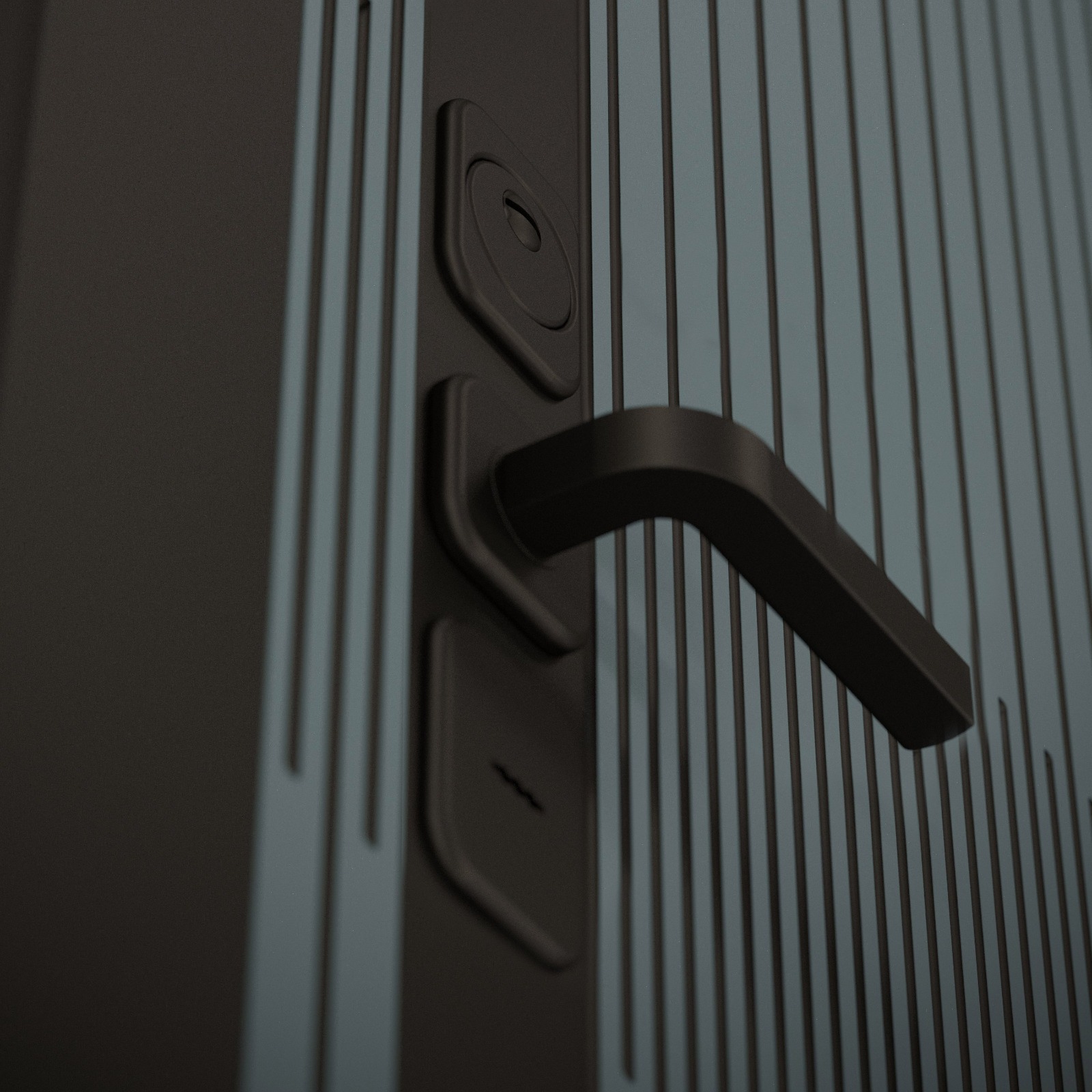 Фурнитура в черном цвете: Броненакладка врезная, накладка со шторкой, глазок , дверная ручка, ночная задвижка. Цилиндр ключ-вертушка (производитель не регламентируется), регулируемый эксцентрик.
