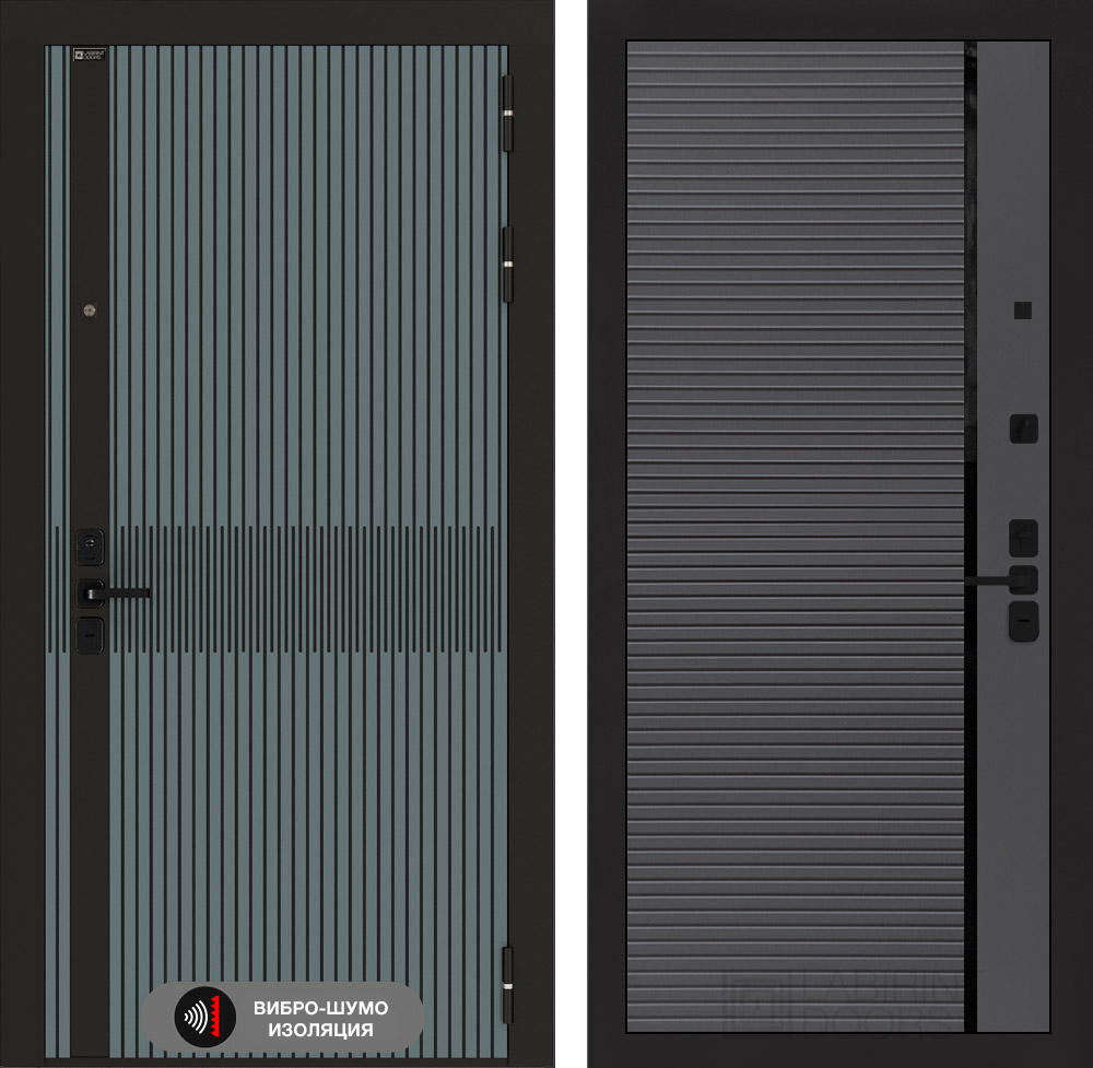 Фурнитура в черном цвете: Броненакладка врезная, накладка со шторкой, глазок , дверная ручка, ночная задвижка. Цилиндр ключ-вертушка (производитель не регламентируется), регулируемый эксцентрик.