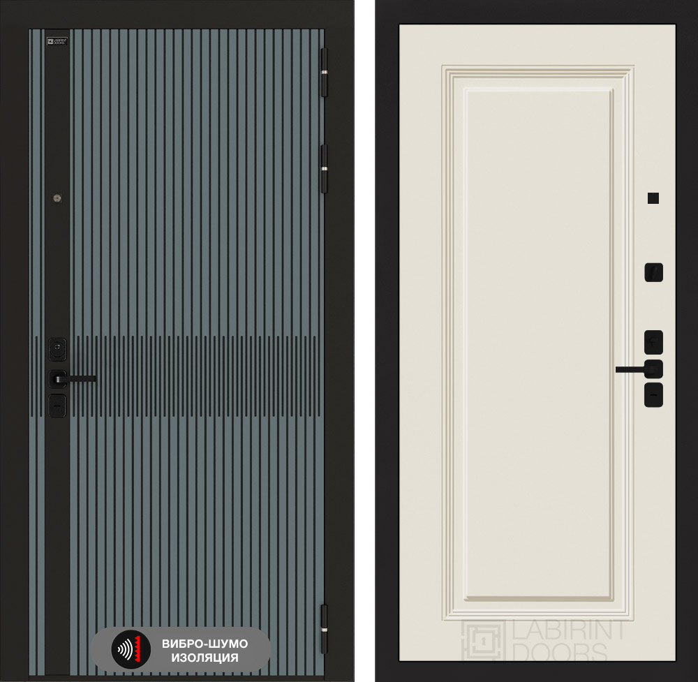 Фурнитура в черном цвете: Броненакладка врезная, накладка со шторкой, глазок , дверная ручка, ночная задвижка. Цилиндр ключ-вертушка (производитель не регламентируется), регулируемый эксцентрик.