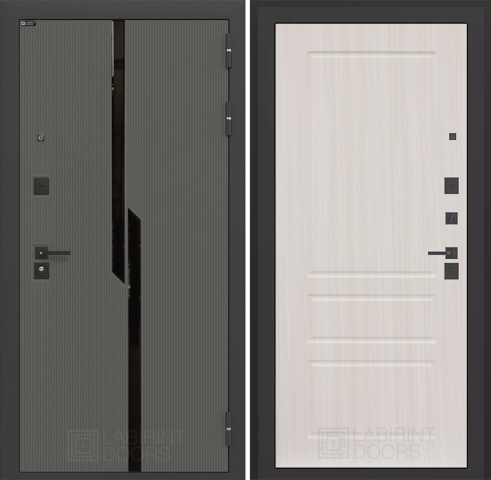 Фурнитура в черном цвете: Броненакладка врезная, накладка со шторкой, глазок , дверная ручка, ночная задвижка. Цилиндр ключ-вертушка (производитель не регламентируется), регулируемый эксцентрик.