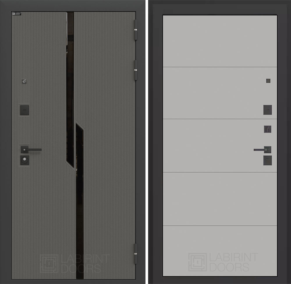 Фурнитура в черном цвете: Броненакладка врезная, накладка со шторкой, глазок , дверная ручка, ночная задвижка. Цилиндр ключ-вертушка (производитель не регламентируется), регулируемый эксцентрик.