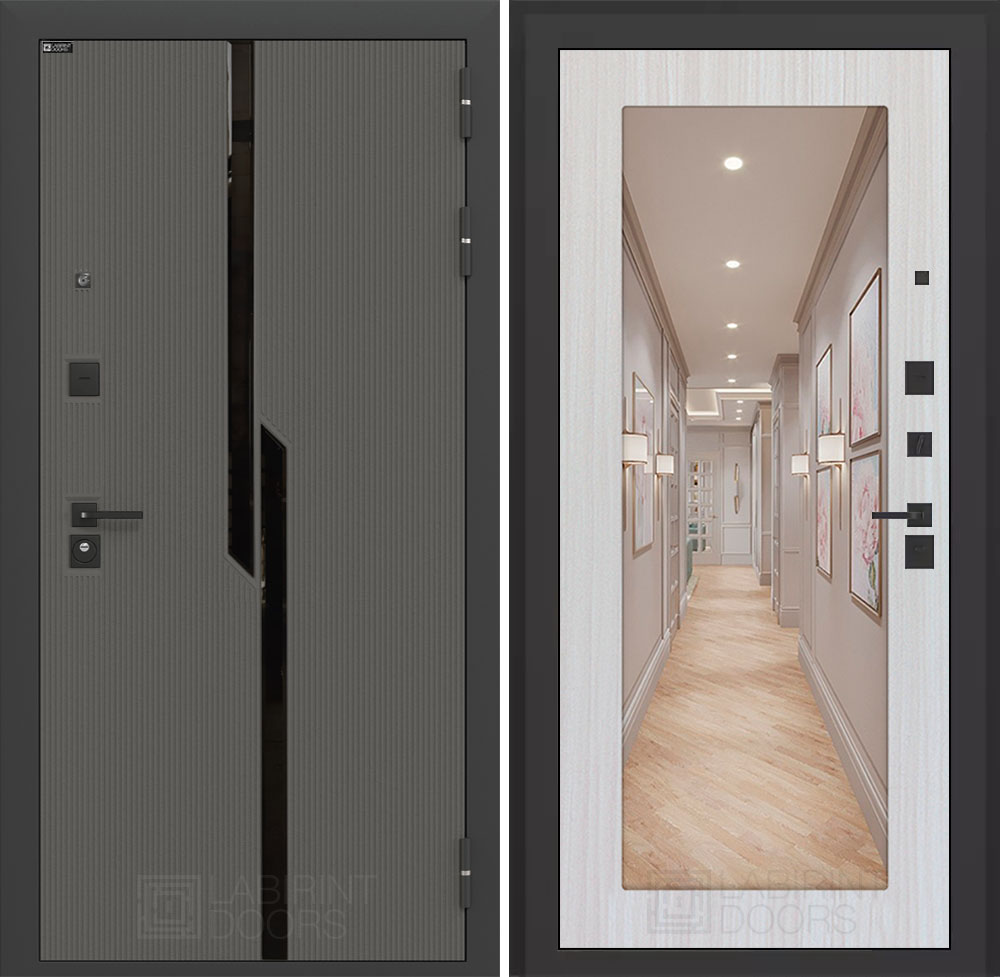 Фурнитура в черном цвете: Броненакладка врезная, накладка со шторкой, глазок , дверная ручка, ночная задвижка. Цилиндр ключ-вертушка (производитель не регламентируется), регулируемый эксцентрик.