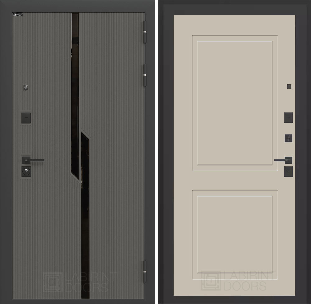 Фурнитура в черном цвете: Броненакладка врезная, накладка со шторкой, глазок , дверная ручка, ночная задвижка. Цилиндр ключ-вертушка (производитель не регламентируется), регулируемый эксцентрик.