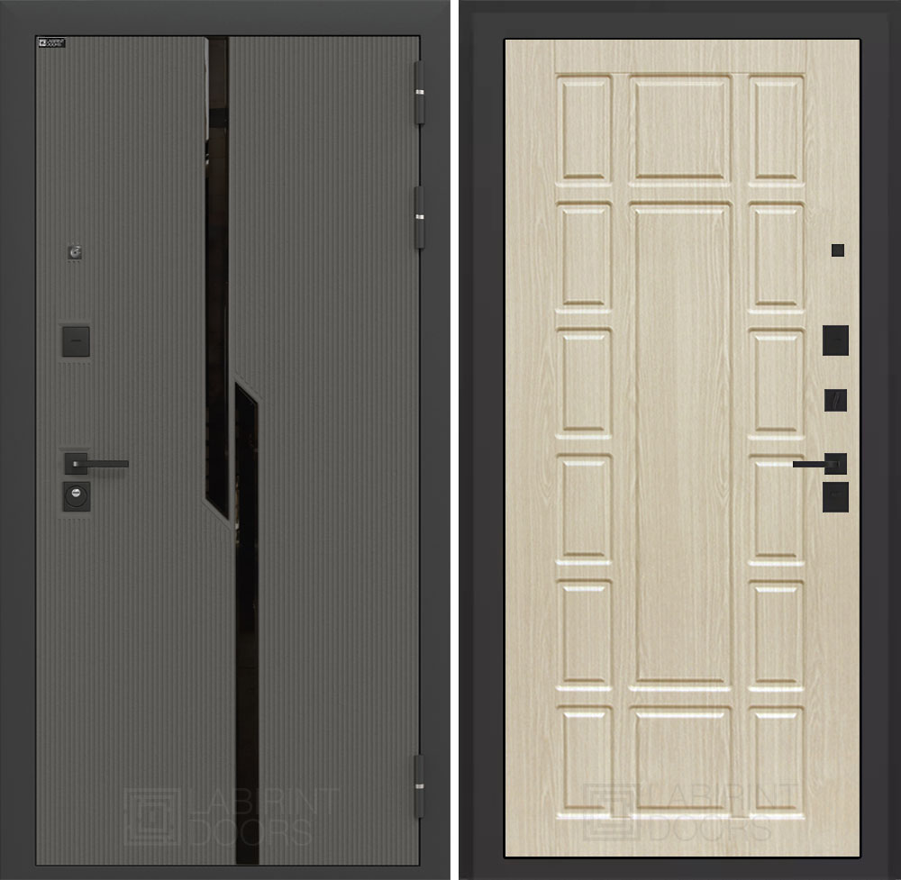 Фурнитура в черном цвете: Броненакладка врезная, накладка со шторкой, глазок , дверная ручка, ночная задвижка. Цилиндр ключ-вертушка (производитель не регламентируется), регулируемый эксцентрик.