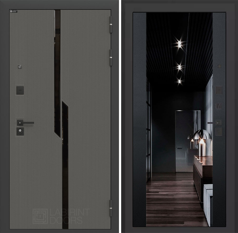 Декоративная MDF панель 10 мм с черным стеклом фацет, цвет "Лофт графит" с металлическим наличником