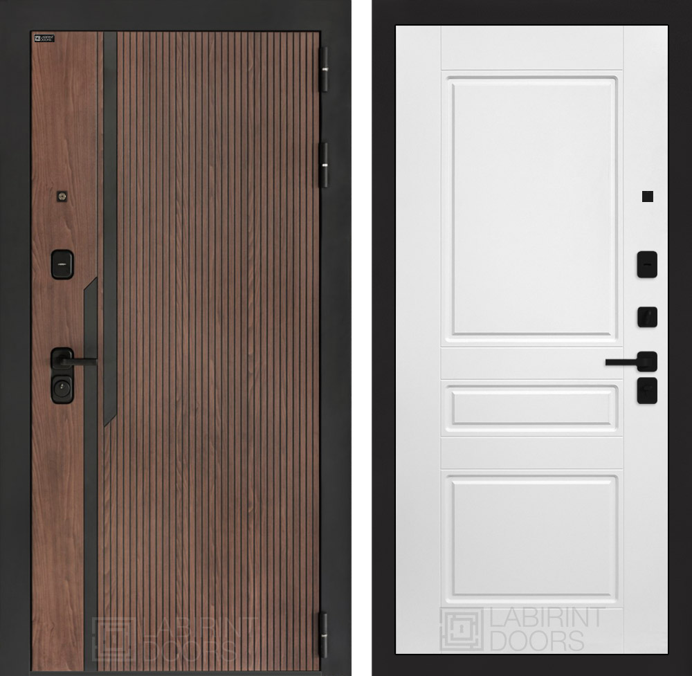 Фурнитура в черном цвете: Броненакладка врезная, накладка со шторкой, глазок , дверная ручка, ночная задвижка. Цилиндр ключ-вертушка (производитель не регламентируется), регулируемый эксцентрик.