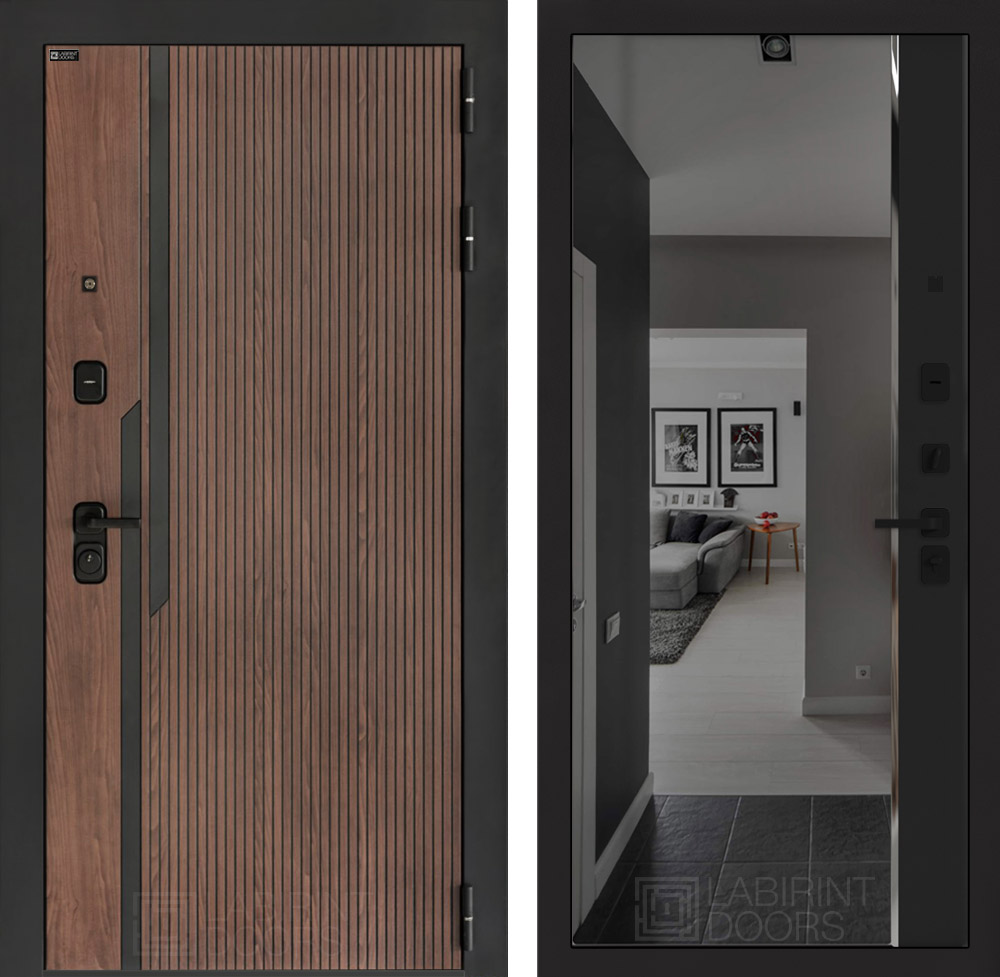 Фурнитура в черном цвете: Броненакладка врезная, накладка со шторкой, глазок , дверная ручка, ночная задвижка. Цилиндр ключ-вертушка (производитель не регламентируется), регулируемый эксцентрик.