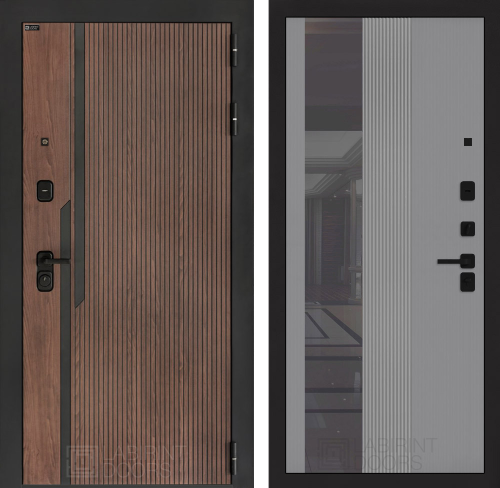 Фурнитура в черном цвете: Броненакладка врезная, накладка со шторкой, глазок , дверная ручка, ночная задвижка. Цилиндр ключ-вертушка (производитель не регламентируется), регулируемый эксцентрик.