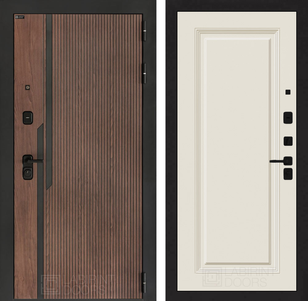 Фурнитура в черном цвете: Броненакладка врезная, накладка со шторкой, глазок , дверная ручка, ночная задвижка. Цилиндр ключ-вертушка (производитель не регламентируется), регулируемый эксцентрик.