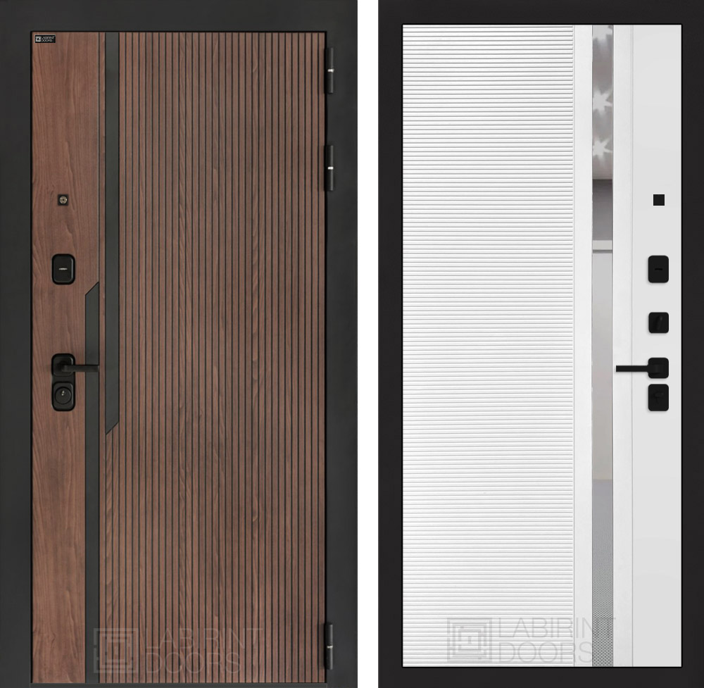 Фурнитура в черном цвете: Броненакладка врезная, накладка со шторкой, глазок , дверная ручка, ночная задвижка. Цилиндр ключ-вертушка (производитель не регламентируется), регулируемый эксцентрик.