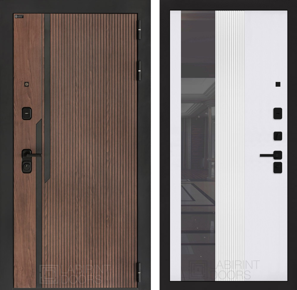 Фурнитура в черном цвете: Броненакладка врезная, накладка со шторкой, глазок , дверная ручка, ночная задвижка. Цилиндр ключ-вертушка (производитель не регламентируется), регулируемый эксцентрик.