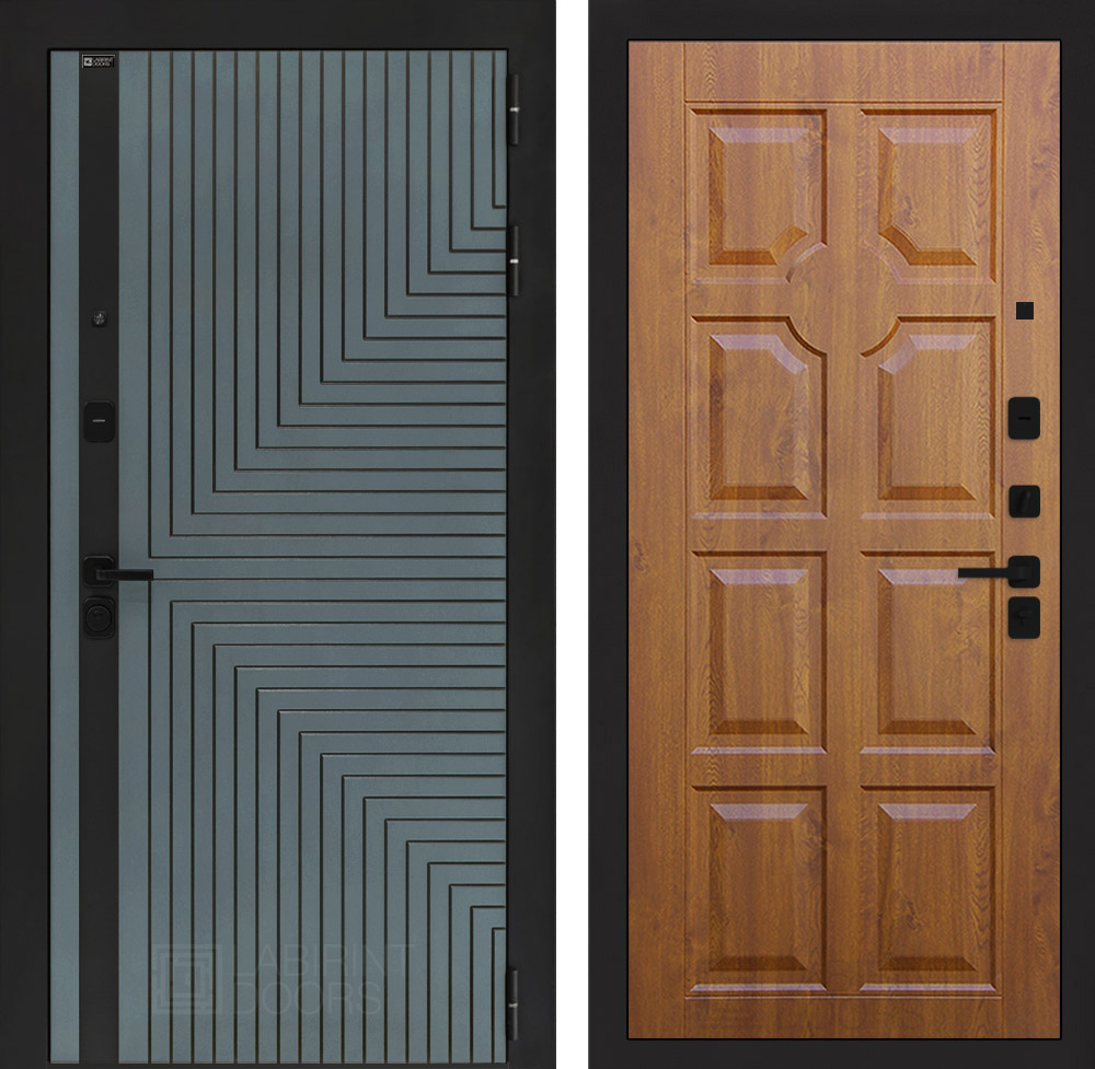 Фурнитура в черном цвете: Броненакладка врезная, накладка со шторкой, глазок , дверная ручка, ночная задвижка. Цилиндр ключ-вертушка (производитель не регламентируется), регулируемый эксцентрик.