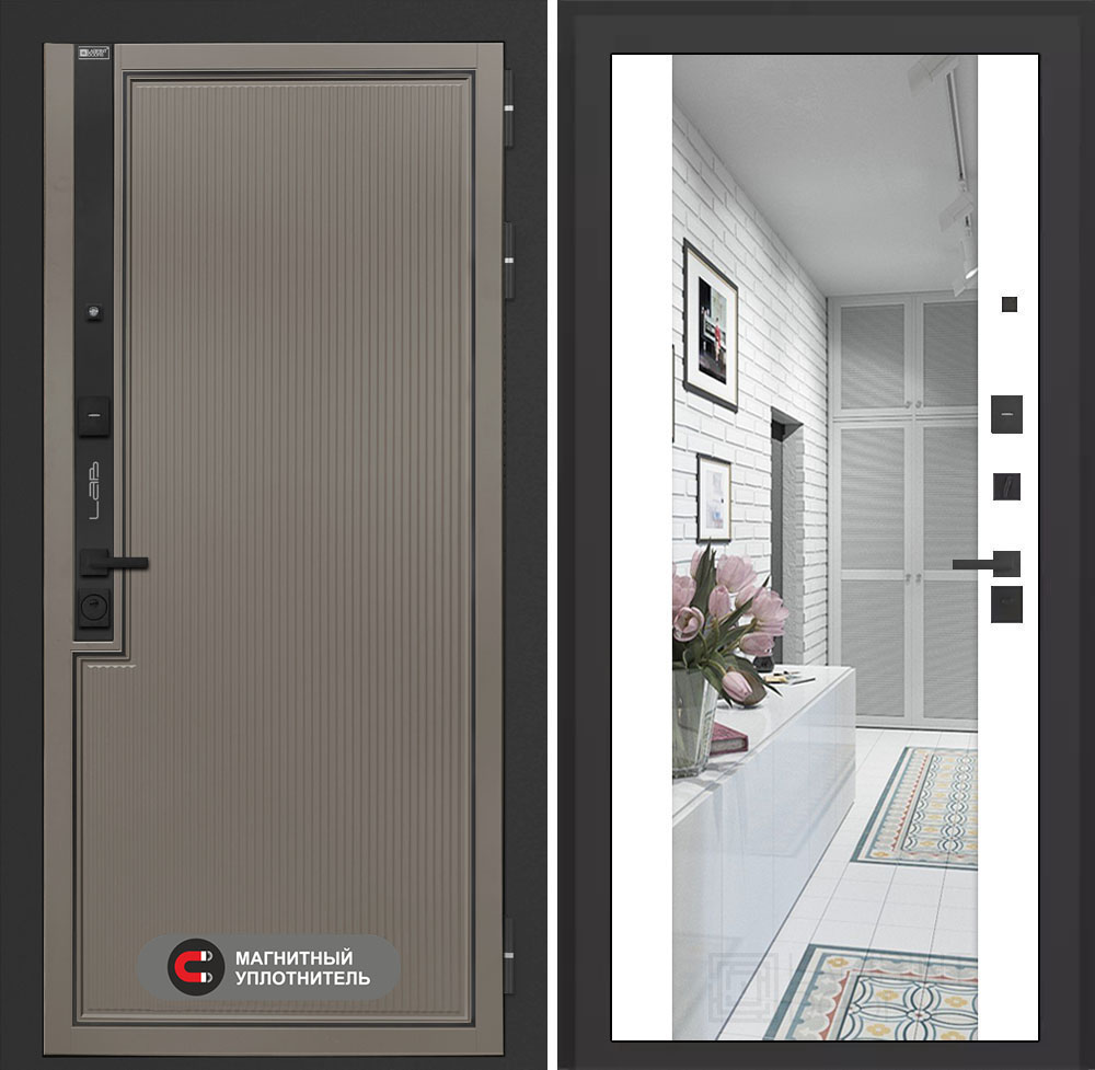 Сталь 1,5 мм, закрытый утепленный короб, усиливающие 2 ребра жесткости (вертикальные П-образные, утепленные)