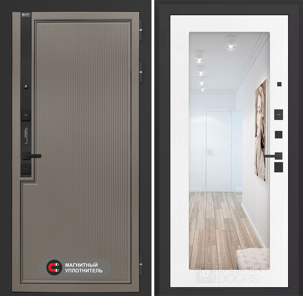 Фурнитура в черном цвете: Броненакладка врезная, накладка со шторкой, глазок , дверная ручка, ночная задвижка. Цилиндр ключ-вертушка (производитель не регламентируется), регулируемый эксцентрик.
