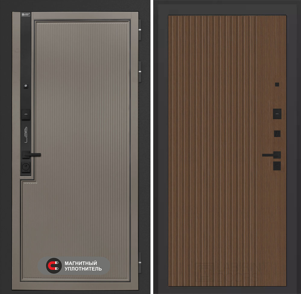 Сталь 1,5 мм, закрытый утепленный короб, усиливающие 2 ребра жесткости (вертикальные П-образные, утепленные)