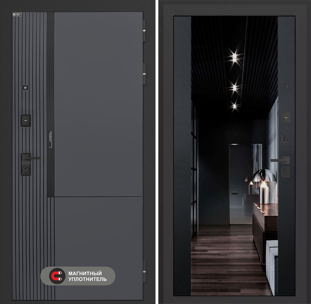 Фурнитура в черном цвете: Броненакладка врезная, накладка со шторкой, глазок , дверная ручка, ночная задвижка. Цилиндр ключ-вертушка (производитель не регламентируется), регулируемый эксцентрик.