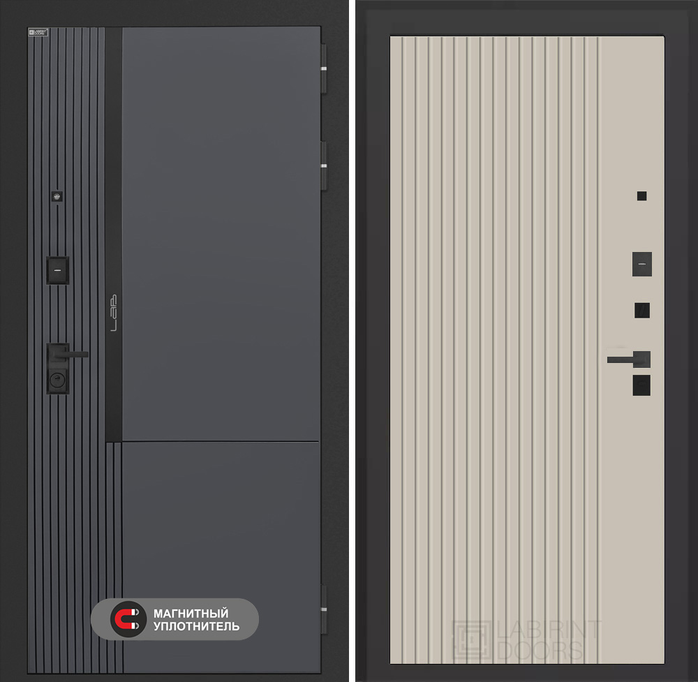Фурнитура в черном цвете: Броненакладка врезная, накладка со шторкой, глазок , дверная ручка, ночная задвижка. Цилиндр ключ-вертушка (производитель не регламентируется), регулируемый эксцентрик.