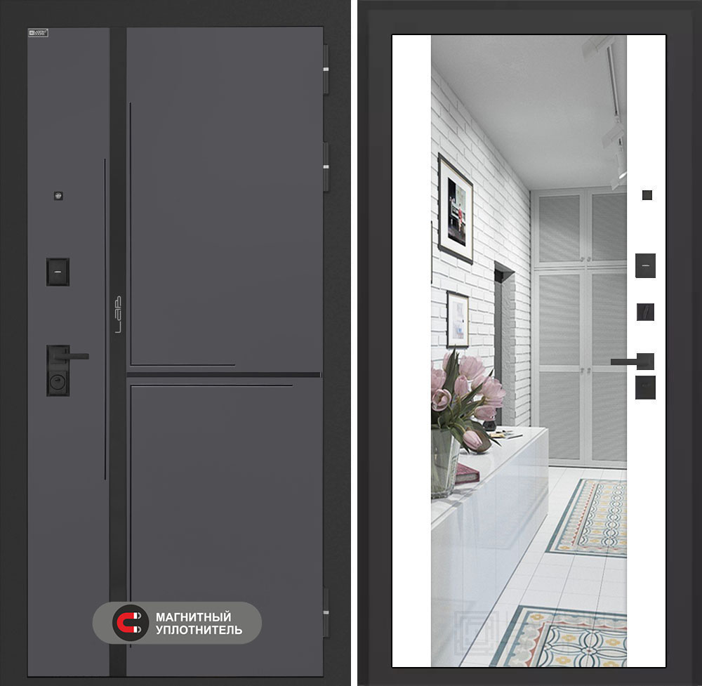 Фурнитура в черном цвете: Броненакладка врезная, накладка со шторкой, глазок , дверная ручка, ночная задвижка. Цилиндр ключ-вертушка (производитель не регламентируется), регулируемый эксцентрик.