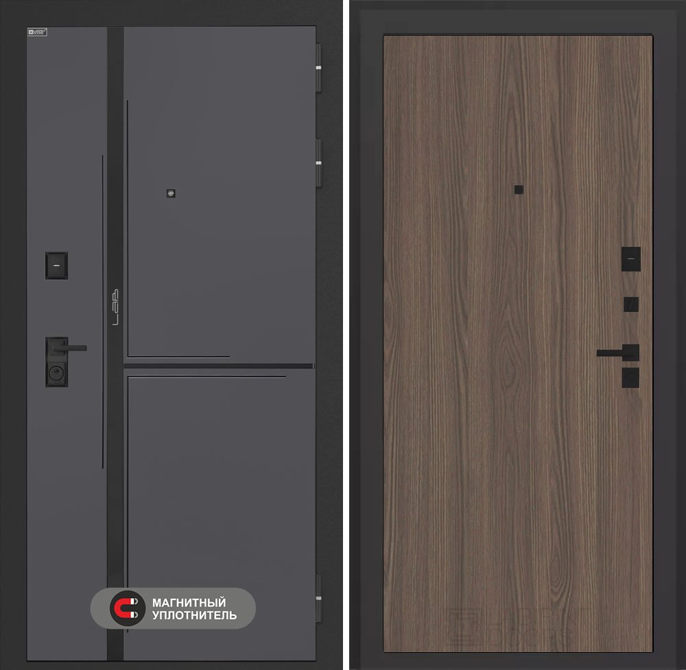 Фурнитура в черном цвете: Броненакладка врезная, накладка со шторкой, глазок , дверная ручка, ночная задвижка. Цилиндр ключ-вертушка (производитель не регламентируется), регулируемый эксцентрик.